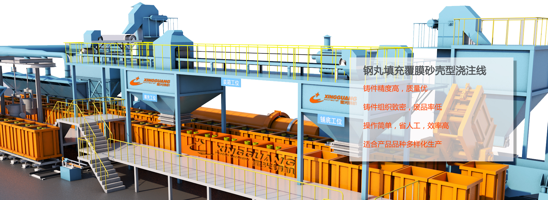 樹脂砂造型線|射芯機(jī)|鋼丸填充殼型線|青島星光鑄造機(jī)械有限公司